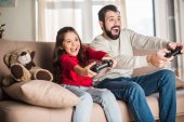 Ojciec i córka bawi joysticki