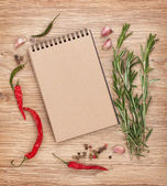 Zioła i przyprawy na podłoże drewniane. Widok z góry