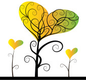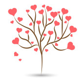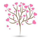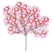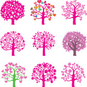 Zbiór drzew miłości z serca czerwony, zielony, niebieski, różowy i żółty pozostawia różnych rozmiarach na białym tle. Ilustracja wektorowa