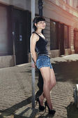 wspaniały brunetka w seksualne poza starego miasta