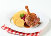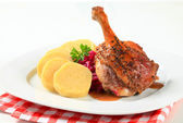 pieczona kaczka z kapustą kiszoną i kluski ziemniaczane