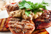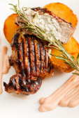 Zdjęcie "Steki z grilla i ziemniaki na biały leżał płaski" może być wykorzystywane do celów osobistych i komercyjnych zgodnie z warunkami zakupionej licencji Royalty-free. Obraz jest dostępny do pobrania w jakości wysokiej rozdzielczości do 5760x3840.