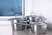 Zdjęcie "Garnki ze stali nierdzewnej na stole w kuchni" może być wykorzystywane do celów osobistych i komercyjnych zgodnie z warunkami zakupionej licencji Royalty-free. Obraz jest dostępny do pobrania w jakości wysokiej rozdzielczości do 5760x3840.