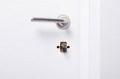 Zdjęcie "Zbliżenie: Dziurka na białe drzwi z drewna" może być wykorzystywane do celów osobistych i komercyjnych zgodnie z warunkami zakupionej licencji Royalty-free. Obraz jest dostępny do pobrania w jakości wysokiej rozdzielczości do 5760x3840.