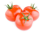 dwa świeże soczyste pomidory, przeciąć na pół i kromka na białym tle na wh