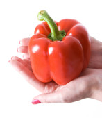 dojrzałe pomidory w ręce kobiece kobieta na białym tle