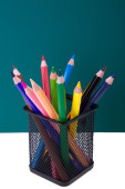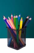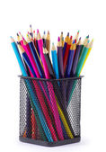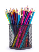 kolorowe kredki w posiadacza na białe tło zbliżenie