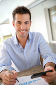 Zdjęcie "uśmiechający się przystojny facet stoi na korytarzu" może być wykorzystywane do celów osobistych i komercyjnych zgodnie z warunkami zakupionej licencji Royalty-free. Obraz jest dostępny do pobrania w jakości wysokiej rozdzielczości do 5760x3840.