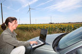 hodowca w gospodarstwie przy użyciu cyfrowego tabletu