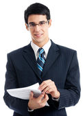 biznesmen wyświetlone szyld, na białym tle
