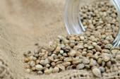 Zdjęcie "Nasiona konopi w drewnianą łyżką i canvas juty" może być wykorzystywane do celów osobistych i komercyjnych zgodnie z warunkami zakupionej licencji Royalty-free. Obraz jest dostępny do pobrania w jakości wysokiej rozdzielczości do 5760x3840.