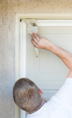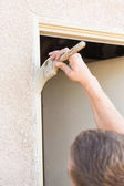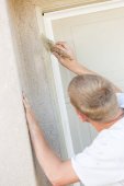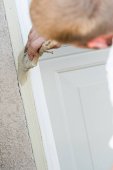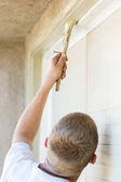 Profesjonalny malarz przy użyciu małego wałka do malowania domu powięzi