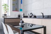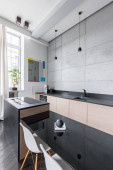 Zdjęcie "Kuchnia z czarny Blat" może być wykorzystywane do celów osobistych i komercyjnych zgodnie z warunkami zakupionej licencji Royalty-free. Obraz jest dostępny do pobrania w jakości wysokiej rozdzielczości do 5760x3840.