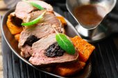 Gotuj gotowana wieprzowa z sosem Rum pomarańczowy.