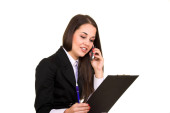 piękna bizneswoman z dokumentami rozmawiającymi przez telefon