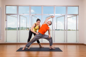 Zdjęcie "Joga instruktor pomoc kobieta z poza" może być wykorzystywane do celów osobistych i komercyjnych zgodnie z warunkami zakupionej licencji Royalty-free. Obraz jest dostępny do pobrania w jakości wysokiej rozdzielczości do 5760x3840.