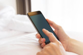 Zdjęcie "Ręce, trzymając telefon komórkowy na łóżku" może być wykorzystywane do celów osobistych i komercyjnych zgodnie z warunkami zakupionej licencji Royalty-free. Obraz jest dostępny do pobrania w jakości wysokiej rozdzielczości do 5760x3840.