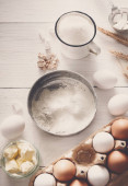 Zdjęcie "Składniki do pieczenia, jajka i mąki do gotowania" może być wykorzystywane do celów osobistych i komercyjnych zgodnie z warunkami zakupionej licencji Royalty-free. Obraz jest dostępny do pobrania w jakości wysokiej rozdzielczości do 5760x3840.