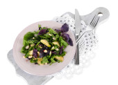 smaczne krewetki marynowane w płycie na białym tle