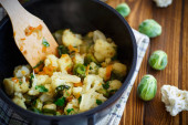 Zdjęcie "Brukselka, pieczone z warzywami i fasolą" może być wykorzystywane do celów osobistych i komercyjnych zgodnie z warunkami zakupionej licencji Royalty-free. Obraz jest dostępny do pobrania w jakości wysokiej rozdzielczości do 5760x3840.