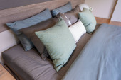 Zdjęcie "Szalik i biały kapelusz ustawienie na pasek koc z poduszkami pastelowych kolorów" może być wykorzystywane do celów osobistych i komercyjnych zgodnie z warunkami zakupionej licencji Royalty-free. Obraz jest dostępny do pobrania w jakości wysokiej rozdzielczości do 5760x3840.