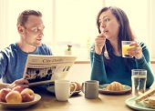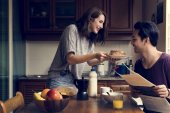 Zdjęcie "Para rano śniadanie" może być wykorzystywane do celów osobistych i komercyjnych zgodnie z warunkami zakupionej licencji Royalty-free. Obraz jest dostępny do pobrania w jakości wysokiej rozdzielczości do 5760x3840.