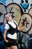 Zdjęcie "blond kobieta przed graffiti" może być wykorzystywane do celów osobistych i komercyjnych zgodnie z warunkami zakupionej licencji Royalty-free. Obraz jest dostępny do pobrania w jakości wysokiej rozdzielczości do 5760x3840.