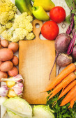 Ręka krojenia warzyw. Ręce kobiety jest krojenie marchwi na desce w pobliżu warzyw
