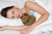 młoda kobieta piękne snu puszyste niedźwiedź w łóżku