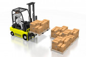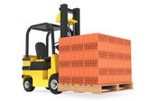 żółte Wózki podnośnikowe z stosu pudeł kartonowych