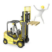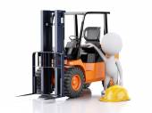 streszczenie białego człowieka w rozwidleniu podnieść ciężarówkę, podnoszenia innych pracowników na