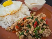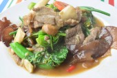 Smażony makaron z wieprzowiną i kapusta moczony w sosie