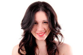 Portret z piękną, młodą kobietę, potrząsając jej włosy