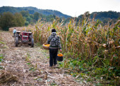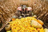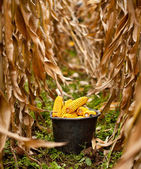 dziecko co łodyg łodyga po zbiorze kukurydzy