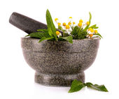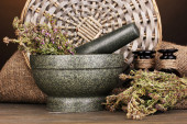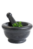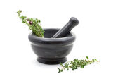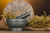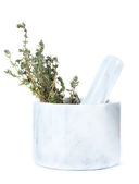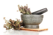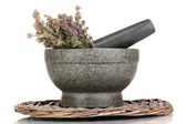 ziele tymianku i zaprawy na maty wiklinowe na białym tle