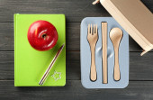 Lunch box z pysznego jedzenia na światło teksturowanej tło