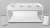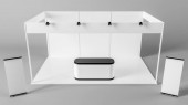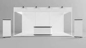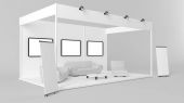 Projekt stoiska biały creative ekspozycji. Stoisko szablonu. Firmowego