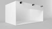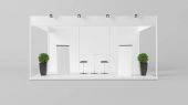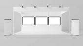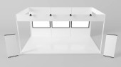 Projekt stoiska biały creative ekspozycji. Stoisko szablonu. Firmowego