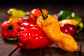 ziele angielskie czerwony i żółty w drewniane miski