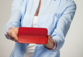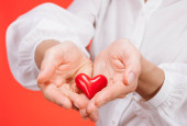 atrakcyjny brunetka dziewczynka gospodarstwa duże czerwone serce uśmiecha