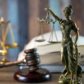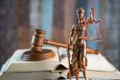 Posąg Iustitia i młotka