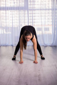 Zdjęcie "Kobieta, rozciąganie w studio" może być wykorzystywane do celów osobistych i komercyjnych zgodnie z warunkami zakupionej licencji Royalty-free. Obraz jest dostępny do pobrania w jakości wysokiej rozdzielczości do 5760x3840.