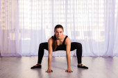 Kobieta, rozciąganie w studio