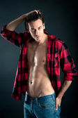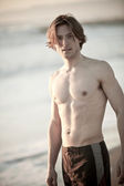 młody atrakcyjny surfować mężczyzna portret na plaży z deski surfingowej