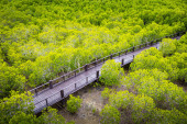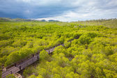 Chodnik z drewnianym mostem przez mangrowe forrest