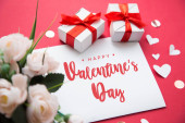 Tło Valentine's Day. karty, serca i róże na drewnianym tarasem