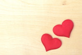 Tło Valentine's Day. serca i róże na drewnianym tarasem