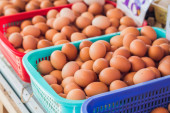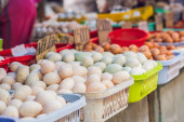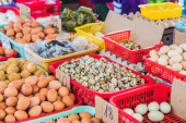 jaja - kurczak i przepiórki w wiklinowym koszu