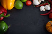 Inne warzywa na czarnym tle kamienia. Widok z góry
