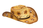 amerykański słomkowy kowbojski kapelusz na białym tle